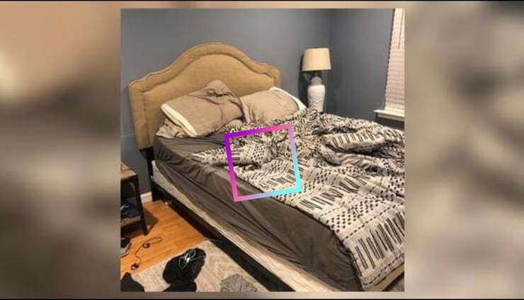 La foto inizialmente condivisa sul social Reddit mostra una camera da letto disordinata, con un letto sfatto e alcuni oggetti gettati per terra, in questo caos si nasconde uno splendido cagnolino.