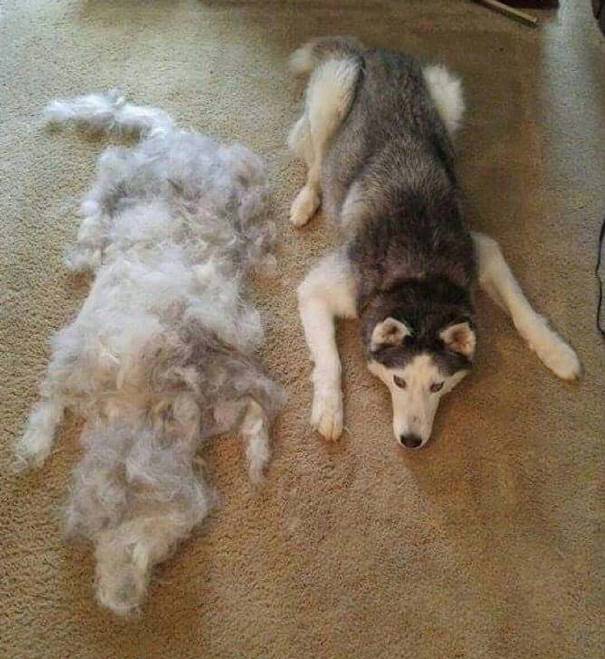 Il sito Boredpanda ha riservato una galleria di fotografie individuate sui diverse piattaforme, come Reddit, Igmur o i Social, su questo tema, scattate da utenti di tutto il mondo che si sono divertiti a condividere l’esperienza peli sparsi o del “post-spazzolata cane” creando delle simpaticissime composizioni.