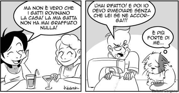 Lo sa molto bene l’illustratore Stefano Gargano che condivide la sua vita con la moglie e la Gatta con la “G” maiuscola di nome Pallina, che da 18 anni ormai ha preso possesso della dimora.