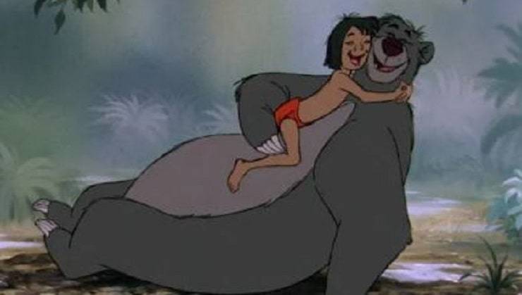 Mowgli è il bambino cresciuto nella giungla che sarà allevato dagli animali in mezzo alla natura. Gli animali lo accudiscono, lo nutrono, lo proteggono, lo lasciano crescere. Ve lo ricordate l’abbraccio tra Mowgli e l’orso Baloo? Non è forse uno dei più teneri mai visti sul grande e piccolo schermo?