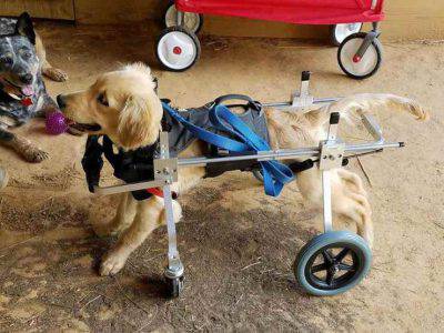 Si chiama Tricycle ed è un Golden Retriev, il cane che vive nella Horse Creek Stable Rescue Sanctuary.