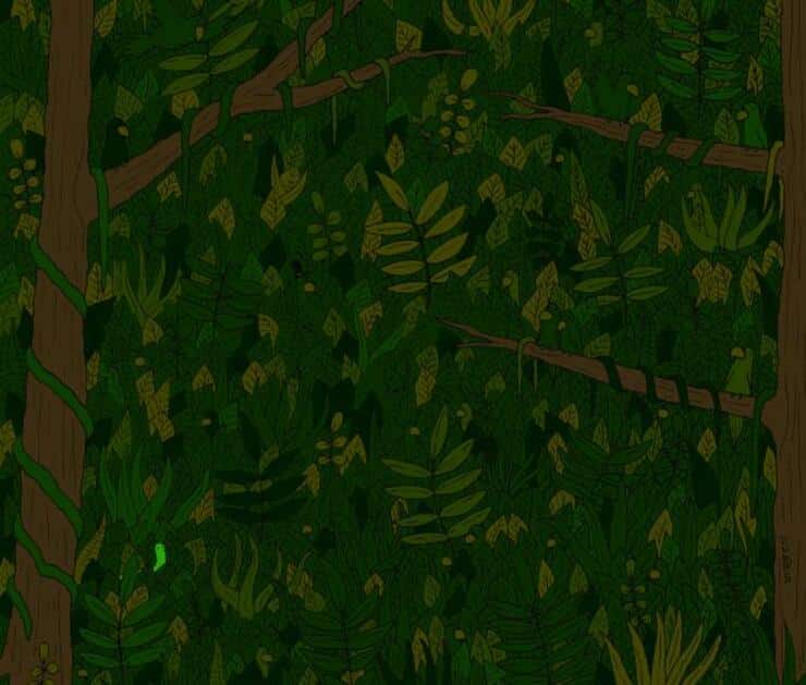 L’individuazione del serpente è veramente molto complicata i minuscolo serpente nascosto tra le foglie si distingue infatti solo per la piccola lingua disegnata in nero osservate ancora una volta e cercate di vederlo prima di scorrere verso il basso e scoprire la soluzione.