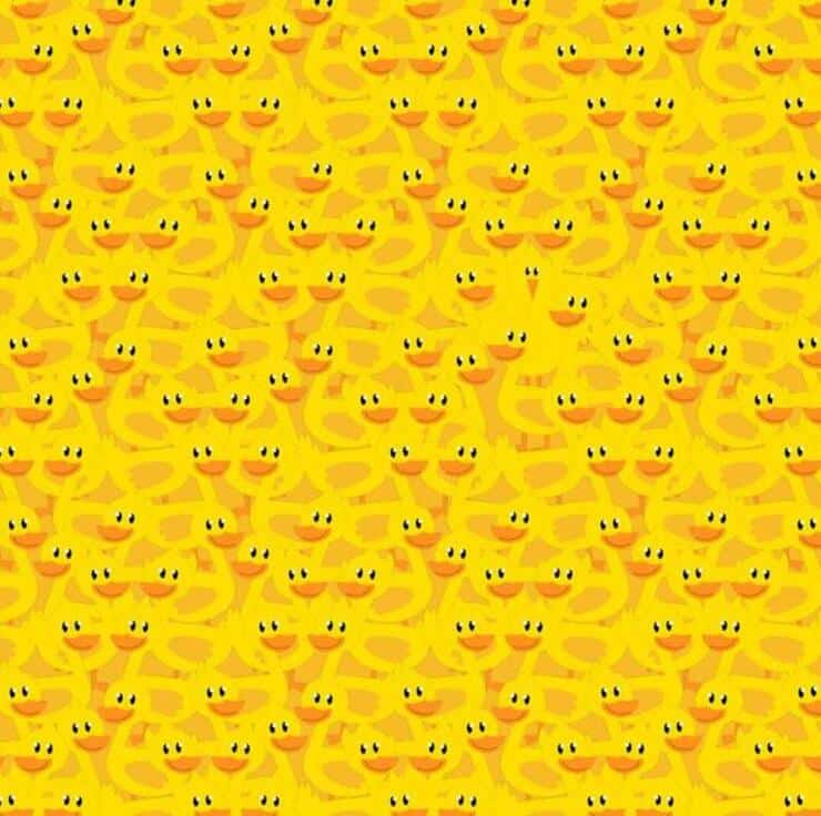 Per la risoluzione del test sono stati messi a disposizione solo 10 secondi nei quali dovreste essere in grado di trovare tra tutto il giallo e l’arancione delle anatre un piccolo pulcino nascosto.