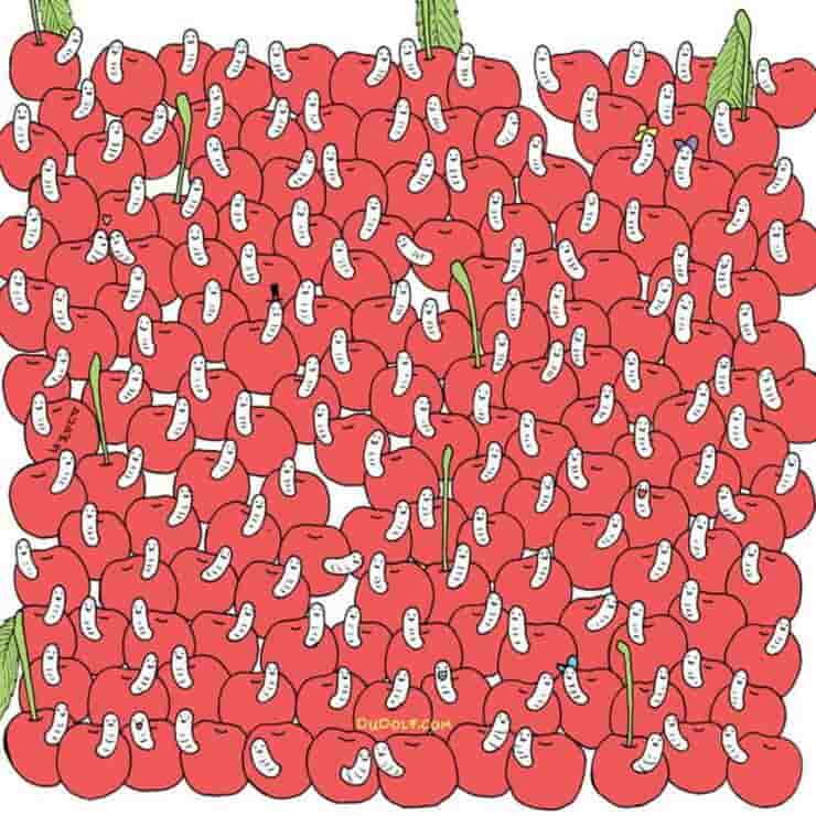 Localizzare la ciliegia senza verme non è affatto semplice ma con molta concentrazione potreste riuscirci anche voi! Avviate il vostro cronometro e diamo il via al test visivo della ciliegia senza verme.