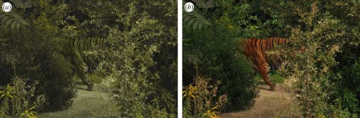 Quindi i predatori (ad esempio le tigri), la cui preda principale sono altri mammiferi (ad esempio i cervi), sperimentano poca pressione evolutiva per evolvere la colorazione verde da una prospettiva tricromatica”.