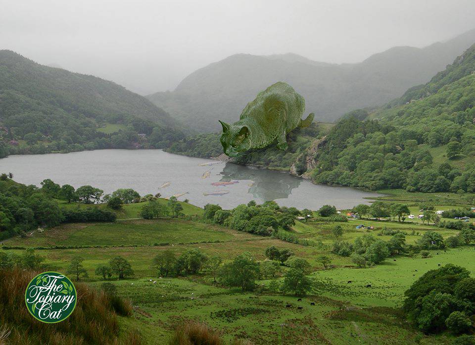 La serie intitolata appunto Topiary Cat propone suggestive quanto altamente poetiche immagini in cui Toddy in versione “arbusto ornamentale” è inserito in diversi paesaggi del Regno Unito: dai castelli, alle pianure, sulle sponde di un lago, sulle rive di un ruscello o mentre si abbevera ad una fontana.
