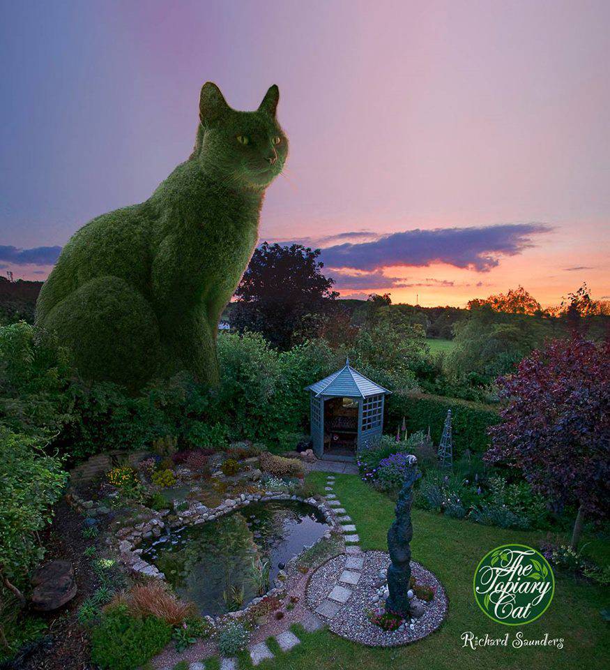Saunders ha voluto rendere un omaggio speciale al suo gatto realizzando una serie d’immagini in cui ha creato dei fotomontaggi facendo rivivere Toddy attraverso l’ars topiaria, ovvero la potatura ornamentale di alberi e arbusti.