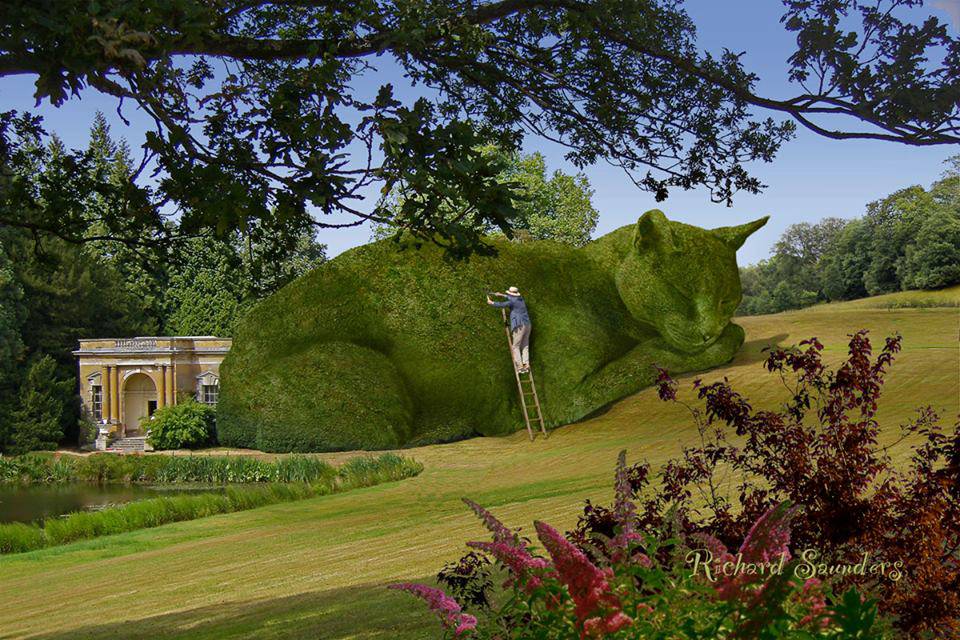 L’artista surrealista australiano Richard Saunders sta letteralmente facendo impazzire il web con la sua pagina Facebook The Topiary Cat dedicata ai straordinari fotomontaggi con protagonista un bellissimo gatto Blu di Russia dello stesso artista e di nome Tolly, venuto a mancare a 12 anni, nel mese di febbraio scorso.