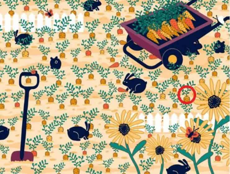 Osservate l’immagine senza alcun limite di tempo e cercate di trovare la fede nascosta facendo una particolare attenzione alle carote, ma se ancora non riuscite a vederla scorrete verso il basso e scoprirete la soluzione.