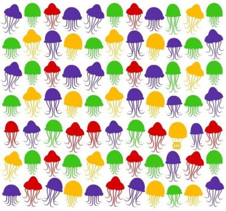 Il disegno caratterizzato da molte meduse colorate su uno sfondo bianco portano l’utente ad essere un po’ confuso sulla posizione dell’unica mongolfiera, servirà infatti un ottima capacità visiva e una stupefacente concentrazione per riuscire ad individuarla in soli 5 secondi.