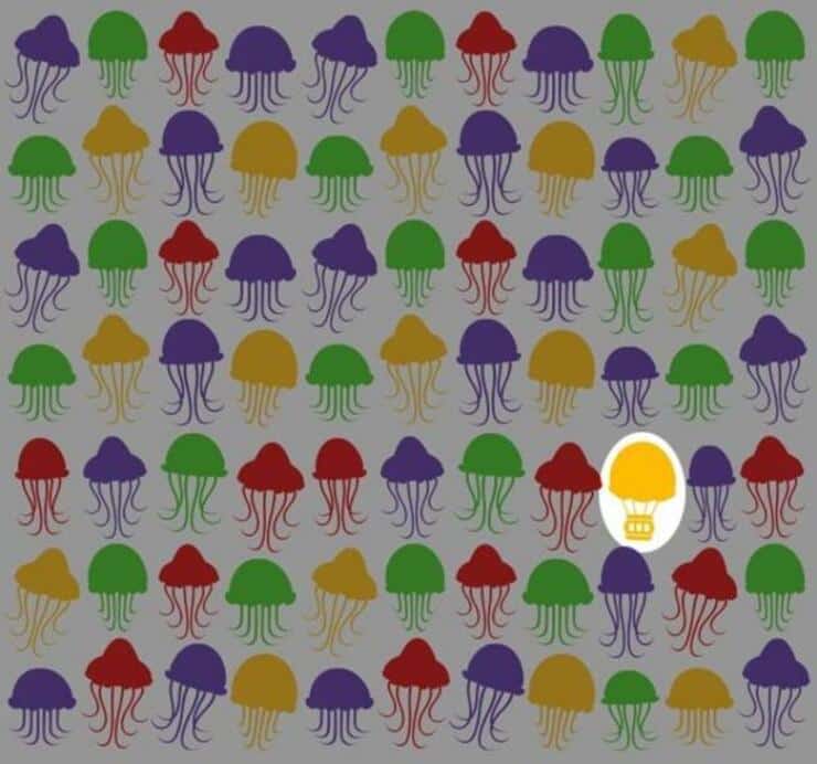 Trovare in soli 5 secondi l’unica mongolfiera nascosta tra le meduse non era affatto semplice, il tempo di soli 5 secondi per una mente non allenata alla risoluzione dei test visivi non era infatti sufficiente, quindi se ci siete riusciti vogliamo complimentarci con voi.