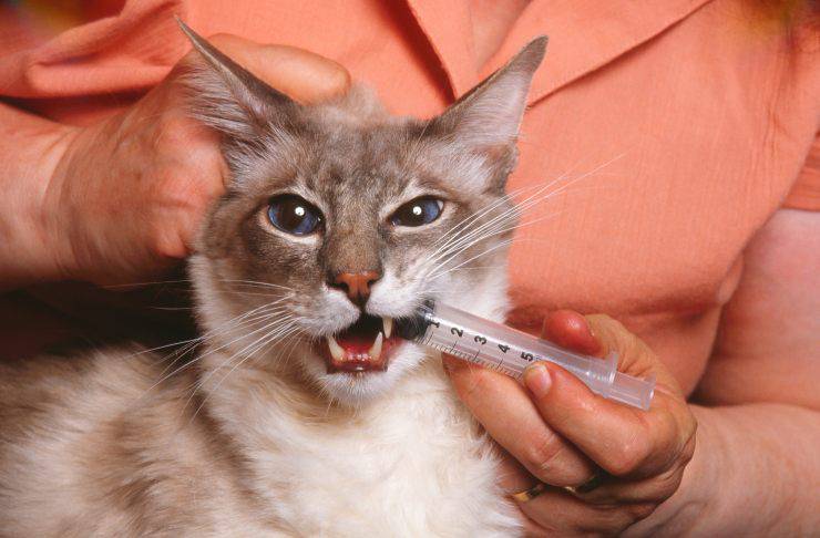 La siringa va messa lateralmente e lo stantuffo va pressato in maniera delicata, per evitare che fuoriesca una quantità eccessiva di liquido. Se lo vediamo particolarmente preoccupato, dobbiamo cercare di calmare il gatto: magari usiamo un tono di voce basso e pacato, in modo da tranquillizzarlo.