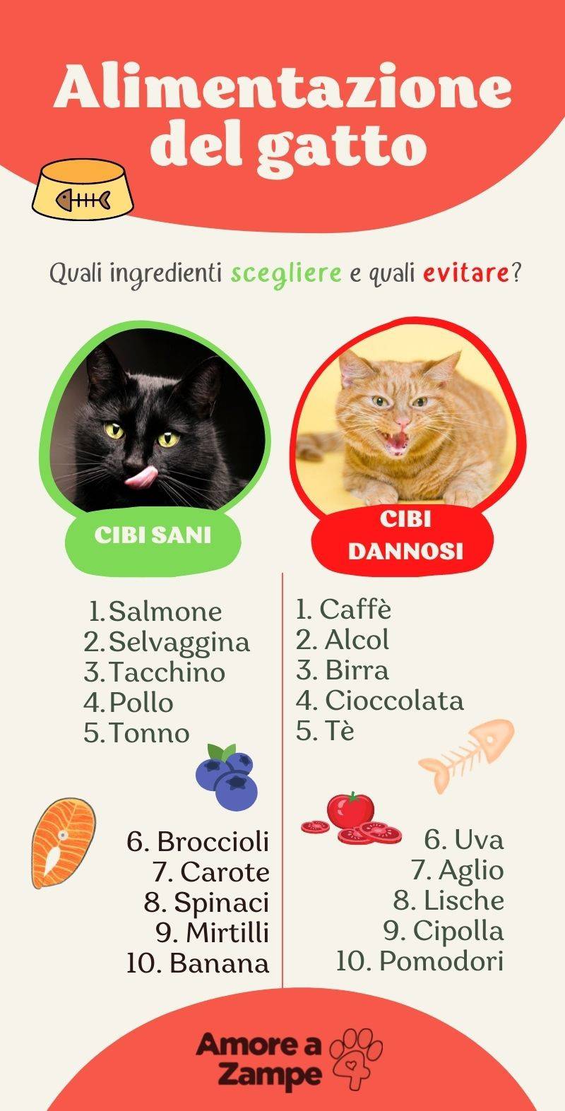 Attenzione, invece, ai cibi e alle bevande che consumiamo abitualmente: la maggior parte di essi, infatti, non sono adatti all’alimentazione felina.