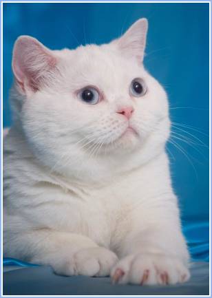 BRITISH BIANCO: I British bianchi sono sempre stati molto apprezzati per la purezza del loro mantello, e in alcuni Paesi sono considerati simbolo di perfezione. Come nel Persiano bianco, la varietà a occhi azzurri è geneticamente predisposta alla sordità. La razza odierna deriva da programmi di selezione effettuati con gatti di strada verso la fine del XIX secolo. Il British bianco è intelligente, con la saggezza del gatto randagio, e costituisce un affettuoso compagno. Esistono tre varietà: a occhi azzurri, a occhi arancio e a occhi impari (i gatti bianchi a pelo corto senza pedigree hanno di solito gli occhi verdi). Inoltre c’è l’Albino a pelo corto che è bianco, con occhi azzurro chiaro, le cui pupille virano al rosso con la luce riflessa.