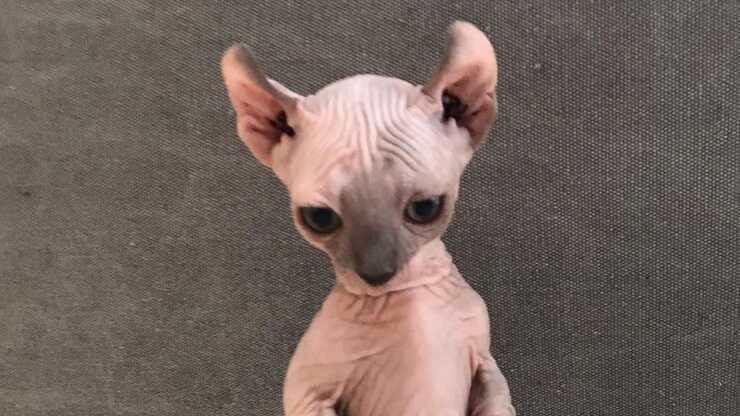 Quali? La totale assenza di pelo nel Dwelf, che il gatto ha ereditato dallo Sphynx.