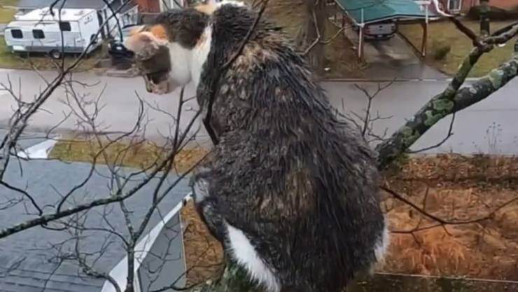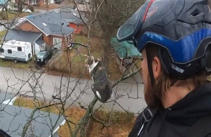 Nemmeno i vigili del fuoco sono riusciti a salvare il gatto intrappolato sull’albero, l’altezza era eccessiva ma dopo 4 giorni è arrivato l’inatteso salvatore