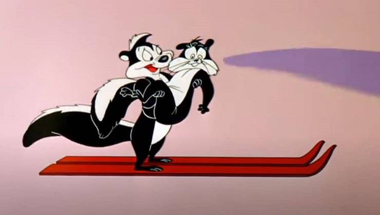 Pepè comincia quindi a inseguirla e corteggiarla ma la gatta scappa spesso a causa della puzza della moffetta. Prima di Penelope Pepé aveva fatto altre avance a cani e gatti che, per un motivo o per un altro, finivano per avere il mantello bianco e nero ma dall’apparizione dell’avvenente gatta la moffetta non cercherà altre conquiste.