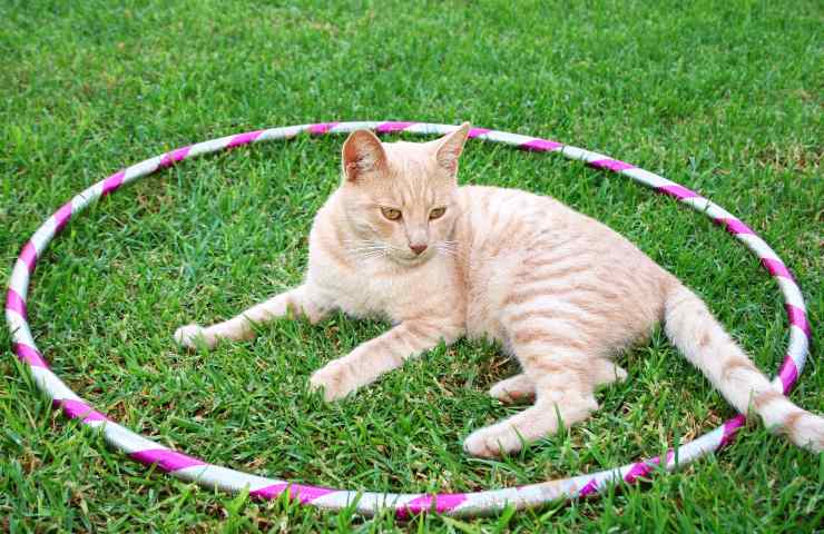 Nel momento in cui quest’ultimo passa attraverso l’hula hoop diamogli il croccantino. Dopodiché ripetiamo l’azione alzando di poco il cerchio e facciamo in modo che il Micio passi attraverso saltando. Potrebbe volerci un po’ di tempo prima che il gatto salti, per questo motivo bisogna avere pazienza.