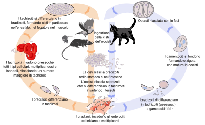 - Ingestione di zoitocisti con bradizoiti mangiando carne cruda o poco cotta o (raro)