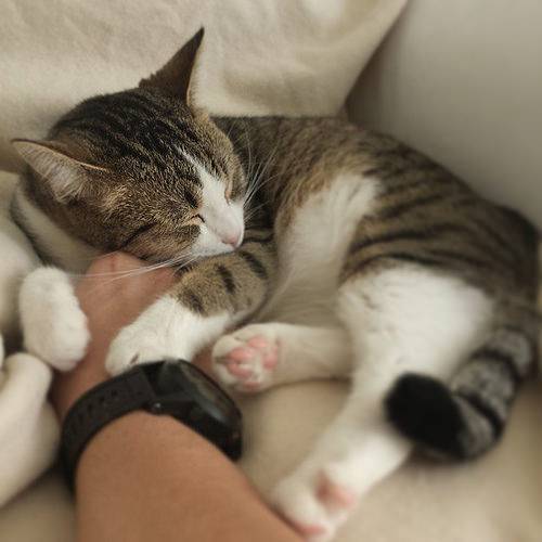 Vivendo a stretto contattato con l’uomo, il gatto ha imparato a conoscere la sicurezza delle mura domestiche. Anche se alcune ricerche scartano questa emozione, in realtà, il gatto cerca il contatto con l’uomo. Dopo essersi nascosto nella casa, cerca il padrone per complimentarsi e fargli le festa, come quando lo accoglie al suo ritorno dal lavoro e cerca attenzioni.