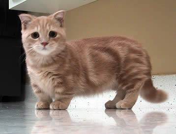 ORIGINI: Nel 1983 fu trovata una femmina nera dalle zampe corte, gravida, rifugiatasi a vivere sotto un furgone in Louisiana, negli Stati Uniti. Mirtilla, così venne chiamata, diede alla luce una cucciolata in cui metà dei gattini aveva le stesse zampe corte. In gravidanze seguenti Mirtilla continuò a generare un 50% di gattini che ereditavano lo stesso tratto. Lei e uno dei suoi gattini, Toulouse, furono la base da cui si formò la razza Munchkin, oggi riconosciuta dalla TICA, ma non dalla CFA americana e dalla britannica GCCF.