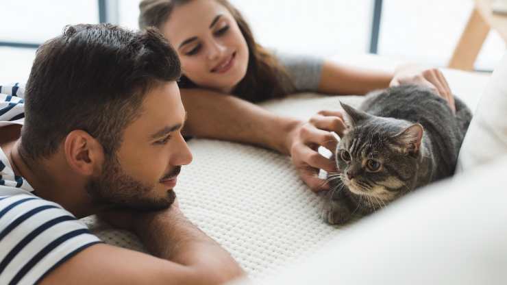 E’ molto importante continuare a dare attenzioni al nostro amico a quattro zampe, coccolarlo come sempre e se il Micio è abituato a dormire sul nostro letto, continuare a farglielo fare anche in presenza del partner.