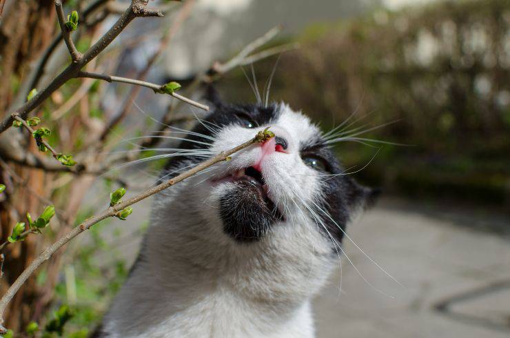 Anche quando il micio si trova fuori casa potrebbe annusare l’aria. In questo caso presenta questo comportamento in quanto in questo modo riesce ad identificare quali sono i territori di altri mici, e se nelle vicinanze vi sia un pericolo per lui, come per esempio la presenza di un cane.