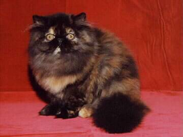 ORIGINI: Questa categoria di Persiani nasce dall’accoppiamento tra un gatto nero e una femmina rossa o viceversa, oppure dall’unione di un maschio nero o rosso e una Squama di tartaruga. La particolarità di questi gatti è di tipo genetico: questa razza infatti presenta soltanto femmine, mentre i maschi sono estremamente rari e sterili. I Persiani squama di tartaruga vennero registrati per la prima volta verso la fine del XIX secolo e fecero la loro comparsa nelle prime mostre feline del 1900. La loro origine è probabilmente da ricercarsi in accoppiamenti casuali tra Persiani neri e forme a pelo corto a squama di tartaruga. Le gatte sono affettuose, gentili e calme e godono fama di essere ottime madri per i gattini. Lo standard americano richiede un gatto nero con macchie uniformi color rosso e crema. Un tratto ricercato sia in Gran Bretagna sia Oltreoceano è una fiamma rossa o crema sul muso, che salga dal naso alla fronte.