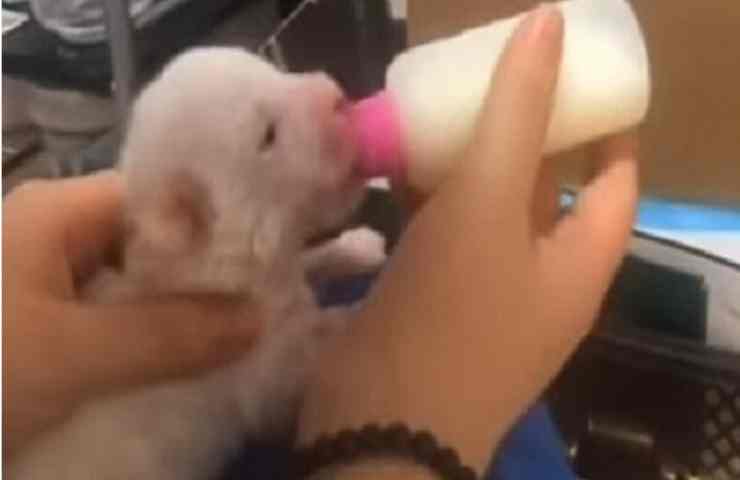 La donna portò immediatamente il piccolo a casa con se offrendole immediatamente del latte caldo per cuccioli. una volta nutrito il cucciolo smise di piangere, e la situazione è migliorata di giorno in giorno.