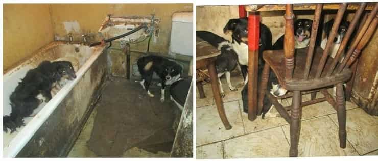 Gli animali erano feriti e ridotti in condizioni degradanti, il manto di ogni cane era incrostato di feci e urina e molti soffrivano anche di una serie di problemi di salute, tra cui malattie della pelle mai curate , malnutrizione, ferite da morso.