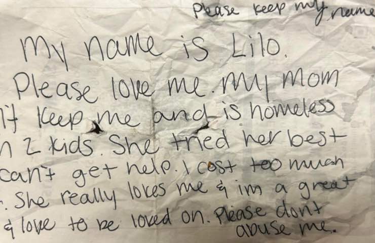 Lilo è stata abbandonata insieme a un biglietto che sembra spiegarne le ragioni: quando i volontari la trovano danno una risposta da brividi.