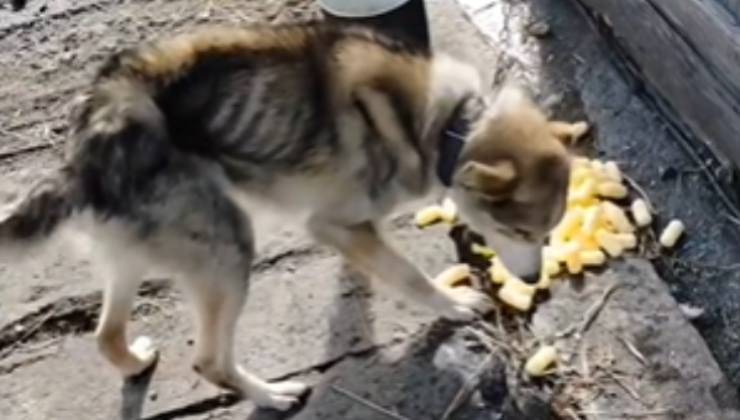 Dopo aver visto quanto il cucciolo fosse magro, le due persone sono tornate alla propria auto e hanno preso l’unico alimento che avessero con loro, un pacchetto di cornetti di mais e formaggio. Non appena il cane ha ricevuto il cibo inaspettato ha iniziato a mangiare scodinzolando per la felicità. Il giorno dopo, l’uomo e la donna sono tornati sul posto e hanno portato al quattro zampe un pezzo di pane e del formaggio. Il terzo giorno, la coppia ha preso la decisione di liberare il cane dalla catena.