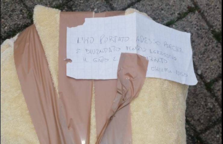 Come è possibile vedere dalle foto condivise su Facebook e come raccontato da una delle volontarie del gattile, Nicoletta Arnaboldi, sopra al trasportino rotto e privo di sportellino (e per questo chiuso con il nastro adesivo) è stato lasciato un foglio. Nel messaggio scritto dai proprietari del gatto si legge quanto segue: «L’ho portato adesso perché è diventato molto aggressivo. Il gatto è sterilizzato. Si chiama Ugo».
