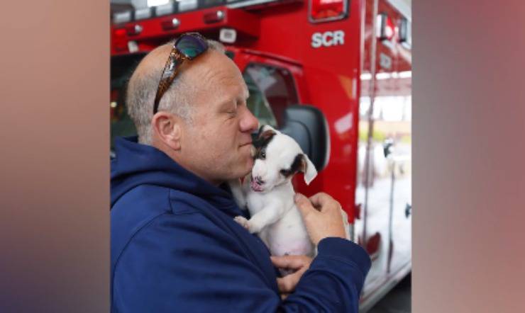 Il meraviglioso gesto del pompiere che adotta un cucciolo di cane dopo averlo salvato da un incendio ha fatto il giro dei social.