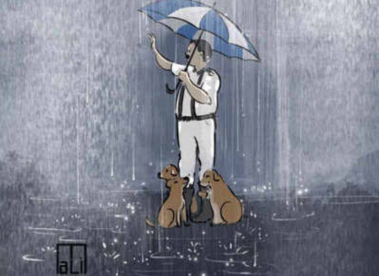 L’immagine che ha fatto il giro del mondo in pochissimo tempo arriva da un paese lontano, esattamente da Calcutta. Nell’ultimo periodo il paese è colpito da pesanti piogge che non danno tregua. Tarun Kumar Mandal, agente di polizia, si trovava a lavoro in mezzo al traffico e sotto la pioggia quando due cagnolini si sono avvicinati.