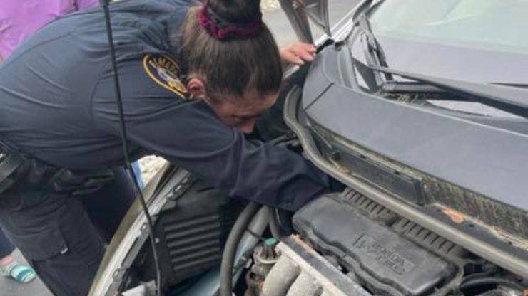 Intrappolato tra il motore e il firewall, l’agente di polizia entra in azione e salva il gattino