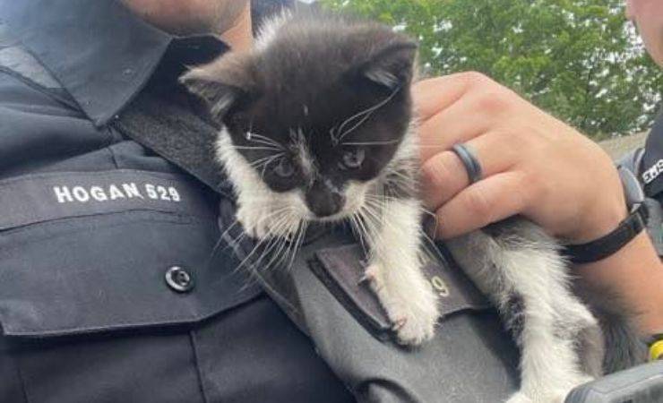 Il dipartimento di polizia della città di Ramapo ha scritto su un post Facebook che anche i soccorritori del Ramapo Valley Ambulance Corps erano sul posto con il loro kit medico per animali domestici. Il gattino ritrovato è dal manto bianco e nero e ha dei bellissimi occhi grigi. Una tenerezza senza pari che ha fatto si che il micio venisse coccolato da tutti gli agenti presenti sul posto. In modo anche per tranquillizzarlo.