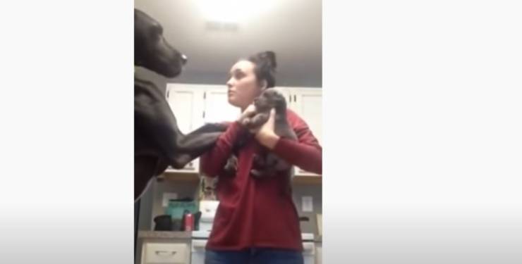 Una giovane ragazza Lindsay, amante dei cani, vive insieme a molti cuccioli tra cui anche Bagira, l’alano di cui vi raccontiamo la storia. Un giorno, appena rientrata in casa, Lindsay ha voluto presentare il nuovo pelosetto di casa al resto della famiglia pensando di registrare l’evento. L’incontro però non è andato come sperava.