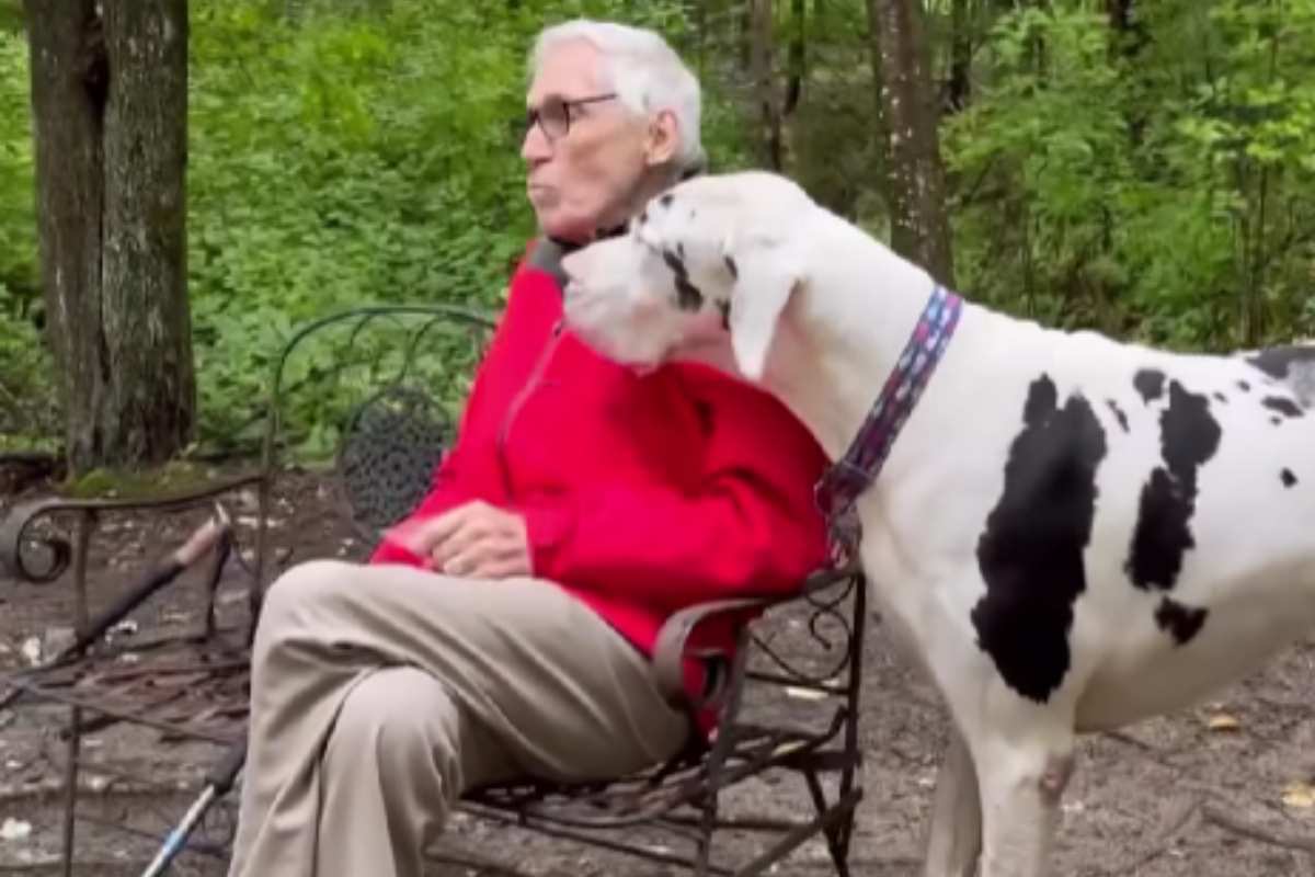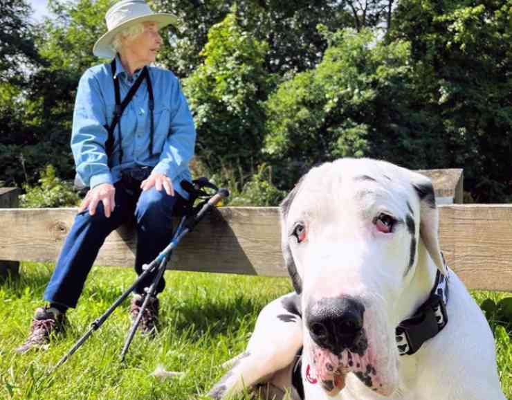Kernel è un dolcissimo alano bianco a macchie nere che adora l’aria aperta e la compagnia delle persone. Proprio durante una di queste escursioni, Alyssa e Kernel si sono imbattuti in una coppia di anziani che condividevano lo stesso amore per le escursioni.