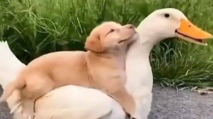 L’amicizia tra un cucciolo e un’oca, un legame speciale che conquista il mondo del web -VIDEO