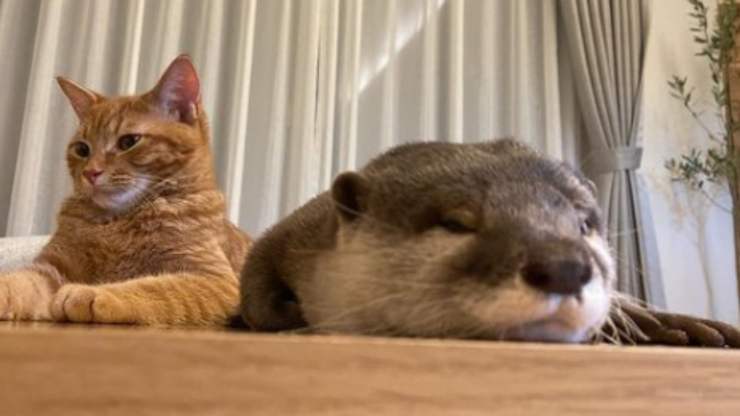 L’amicizia speciale tra una lontra e un gatto. Le immagini e i video postati sui social inteneriscono il mondo del web -FOTO