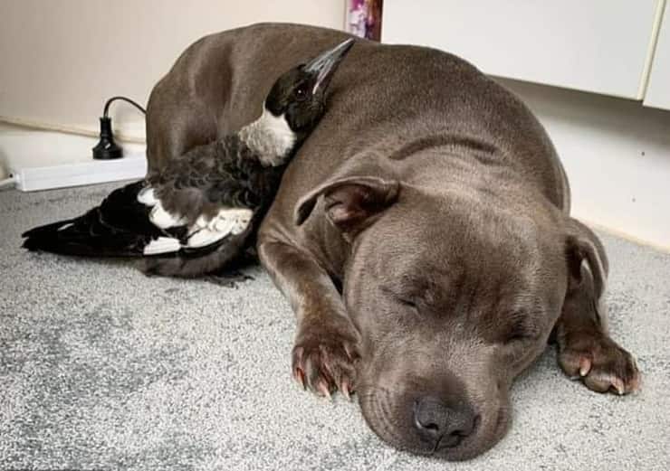 Un video meraviglioso ha sconvolto il web, le due protagoniste del filmato dormono insieme e si coccolano, ma è la loro specie a rendere il video veramente eccezionale, si tratta infatti di un cane di taglia grande e di una gazza ladra.