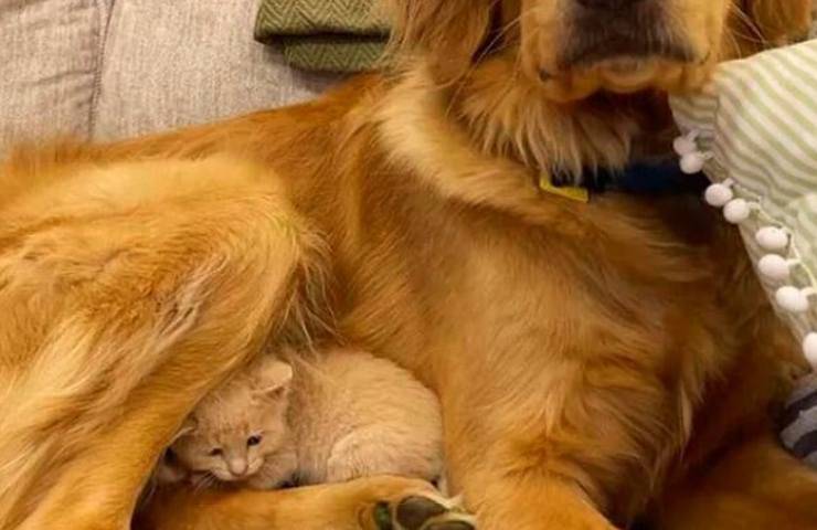 L’intervistata ha spiegato che il cane ha amato prendersi cura della micia tanto da seguirla ovunque. I due sono diventati tanto affiatati che la gatta si è addormentata sopra la pancia dell’altro per un pisolino.