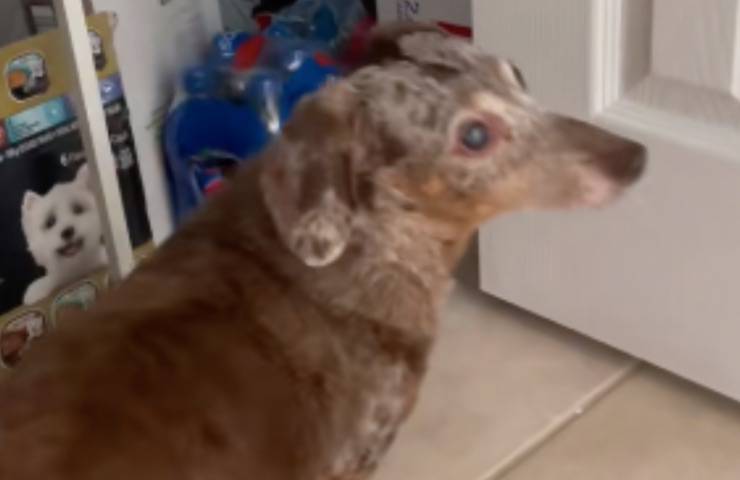 Un anziano cagnolino non vedente viene colto in flagrante in cucina: il suo è un furto dolcissimo