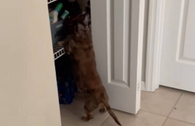 Appena colto in flagrante dal suo papà umano, mentre era intento a rovistare tra le mensole alla ricerca del suo cibo preferito, un tenero Bassotto infonde moltissima tenerezza nel cuore degli utenti. Questo anziano cagnolino, a ben dire estremamente goloso, ha da poco compiuto 13 anni e nella clip – divenuta ormai virale, da pochi giorni, su TIkTok – prova ad agire in maniera indisturbata intrufolandosi all’interno di un ripostiglio della cucina.