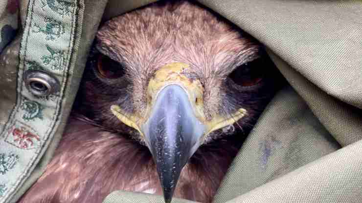 Un’aquila con l’ala ferita, salvata da un guardaparco