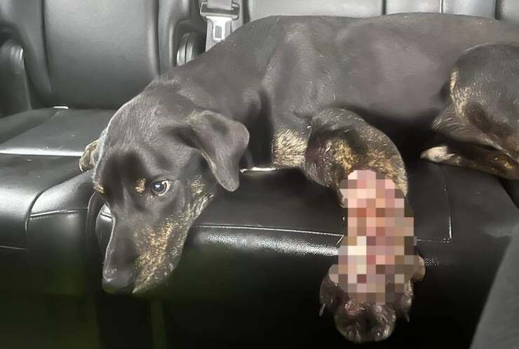 I volontari della Northeast Arkansas Humane Society vedendo la povera creatura in quella orribile situazione hanno trasportato immediatamente il cucciolo presso Animal Medical Center di Jonesboro per far si che i veterinari potessero immediatamente amputare la zampa e salvare la vita al cane.