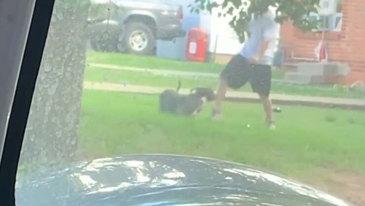 Un ragazzo è stato ripreso da un passante mentre senza motivo ha preso a calci il suo cane, un pitbull, mentre era al telefono