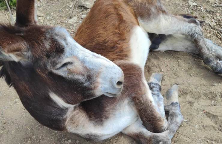 Piccolo asino trovato senza forze in un terreno isolato: le segnalazioni nel giorno di festa – FOTO