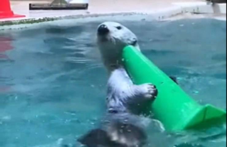 Ogni qual volta che un video che ritrae un animale in cattività viene condiviso sui social il dibattito si riaccende. Così è accaduto per il filmato che ritrae la lontra che fa da assistente ai lavoratori dell’acquario. Il piccolo mammifero, mentre gli umani puliscono il pavimento che circonda la piscina in cui vive, collabora a tenere in ordine il suo ambiente raccogliendo tutti i coni colorati rimasti in acqua probabilmente dopo uno spettacolo.